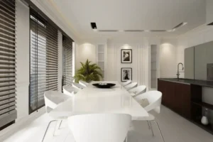 Curtains complement various design motifs, while blinds are suitable for a contemporary and minimalist interior. Roman blinds coordinate with other furniture, while Venetian or roller blinds are ideal for a study or home office. Window coverings give a room a neat appearance and can be made from materials like fabric, jute, metal, or wood.
